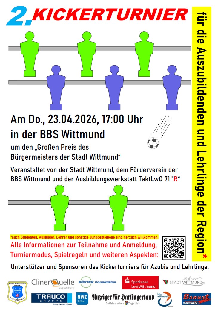 Die Anmeldung der Kicker-Teams erfolgt bitte über info@abw-wittmund.de bis zum Freitag, 10.04.2026 über den jeweiligen Betrieb